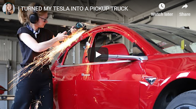Sim, ela comprou um Tesla Model 3 novo em folha e transformou-o numa pick-up elétrica... __________________________ APOIO
